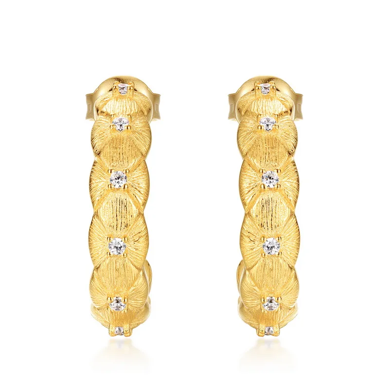 Classic Diamond Pattern Brushed Earrings S925 Sterling Silver Gold Plated Luxury High-End Earrings for Women Wholesale