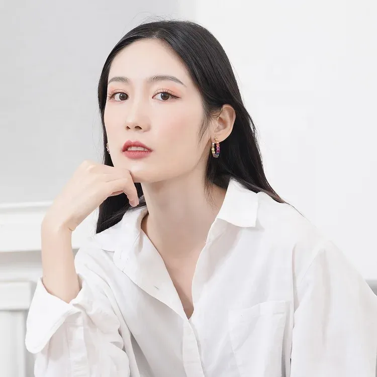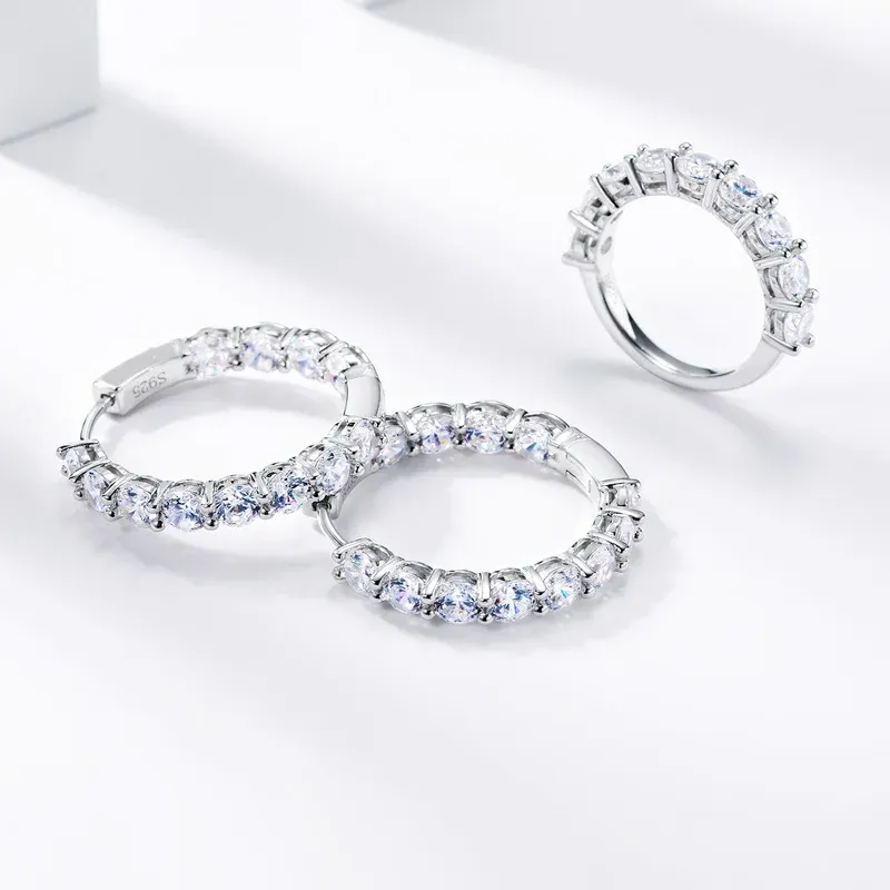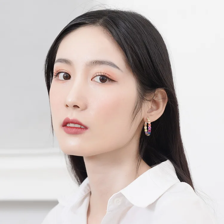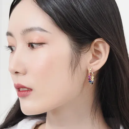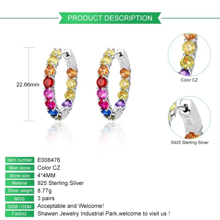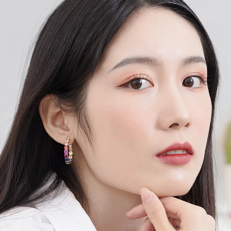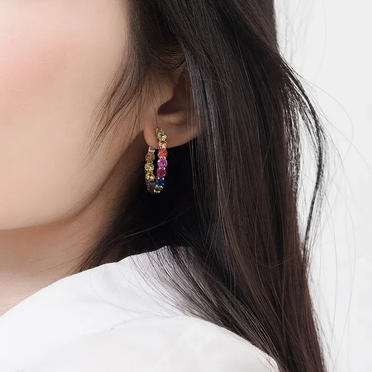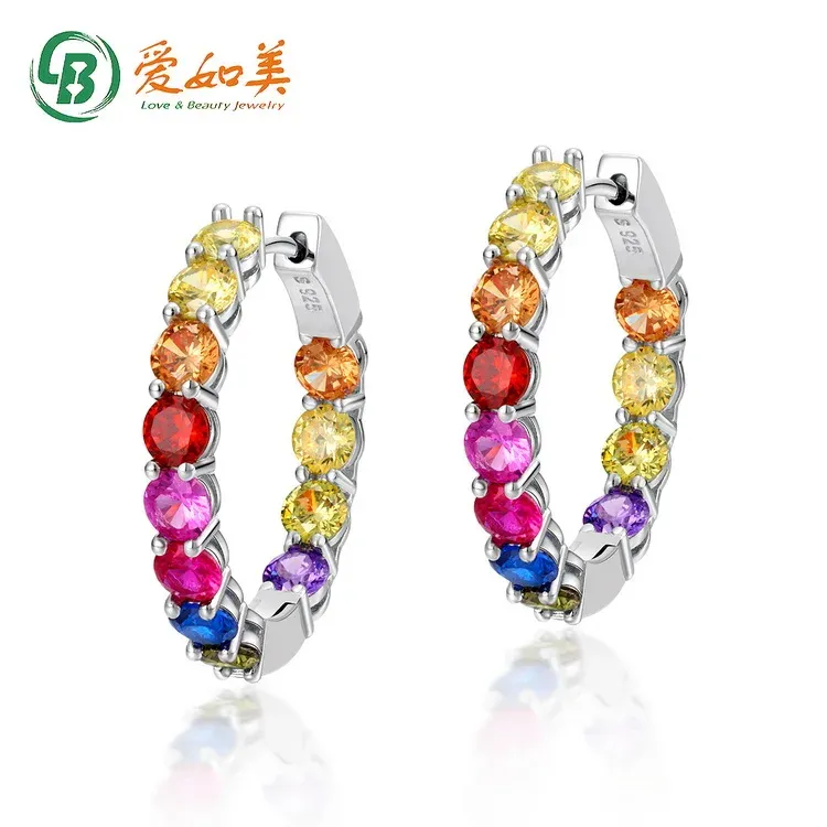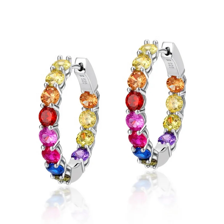 Wholesale Custom 925 Silver Huggie Big Hoop Earrings Rhodium Plated Multi-Color CZ Rainbow Stone Jewelry for Women for Weddings