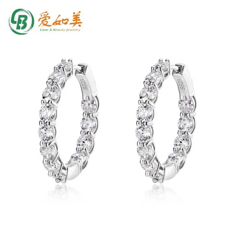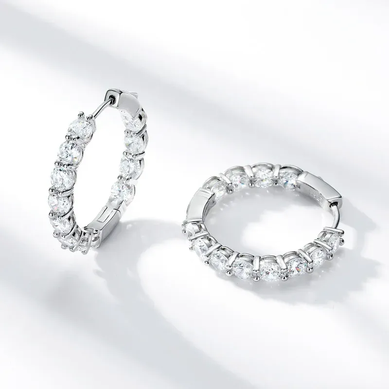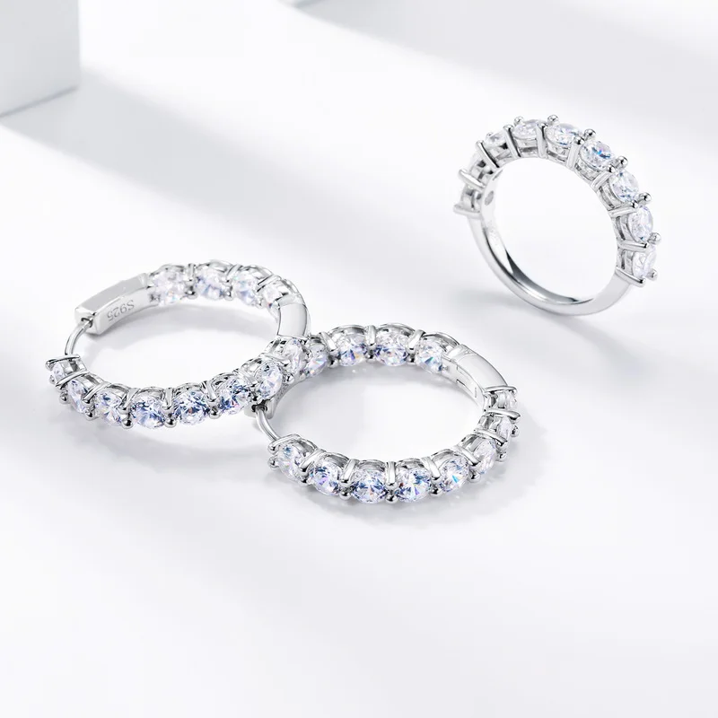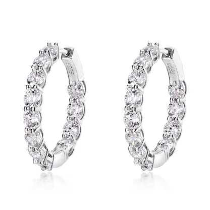 OEM/ODM Fashion Women Jewelry Earrings 5A Cubic Zirconia 925 Sterling Silver White Gold Plated Hoop Earrings