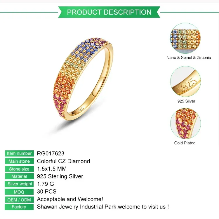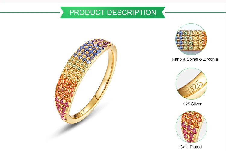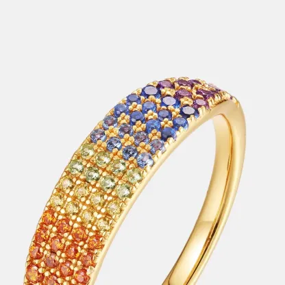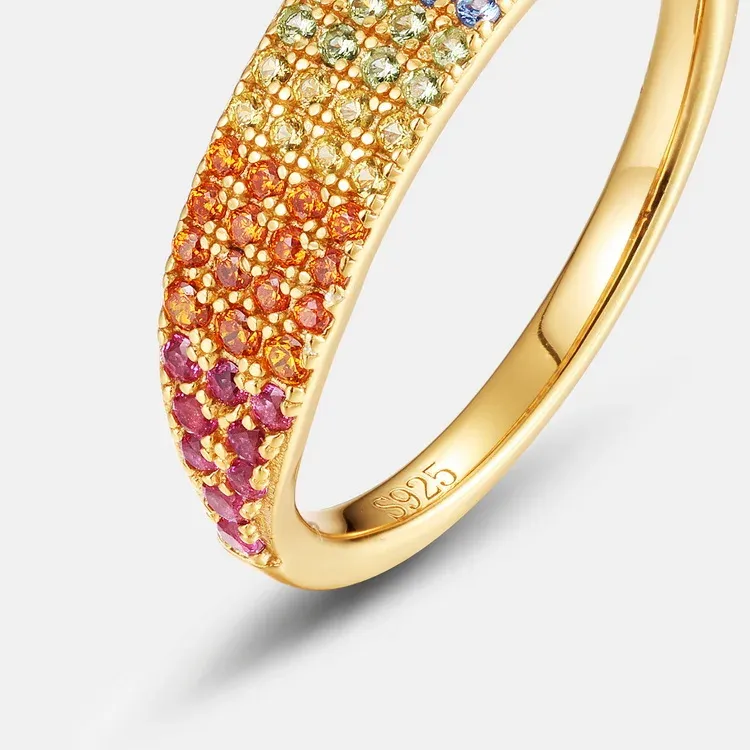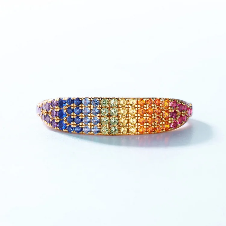 Woman Finger Bling Gold Vermeil 925 Sterling Silver Party Jewelry Dainty Gemstone Luxury Fashion Jewelry Fine Rainbow Ring
