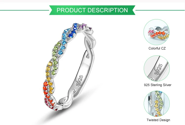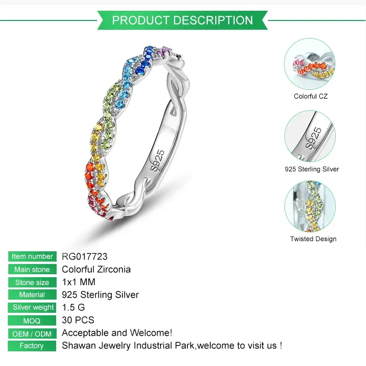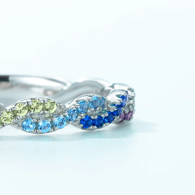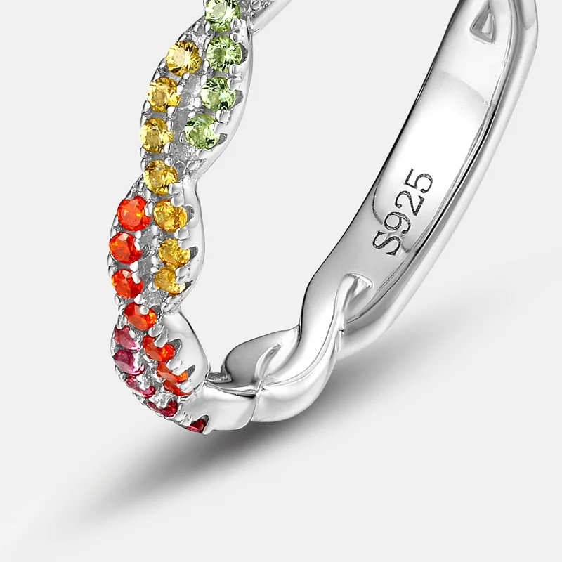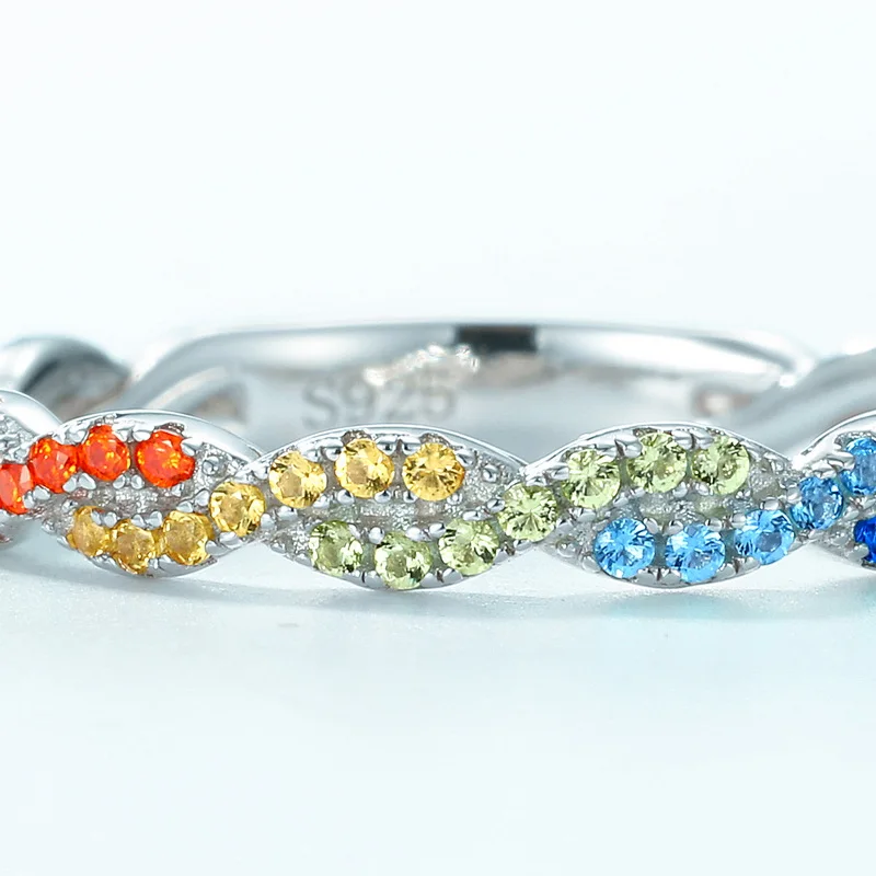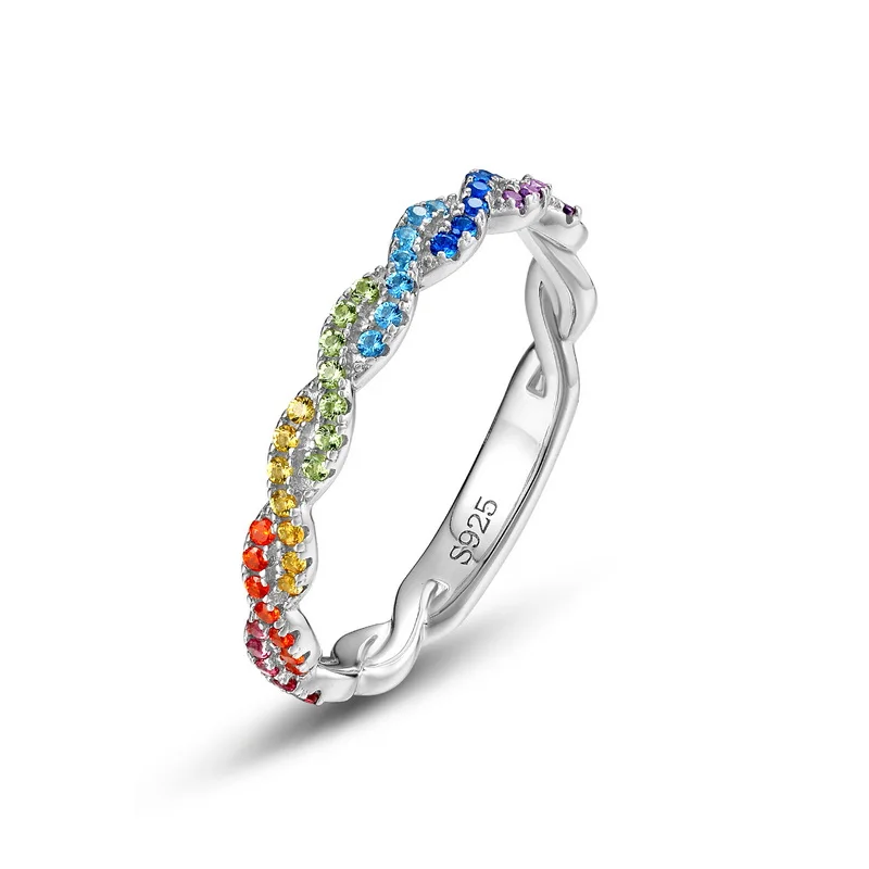 Customizable 925 Silver Simple Twisted Ring Women Colorful Rainbow CZ Cubic Zirconia Bulk Sterling Silver Couples Wedding Ring