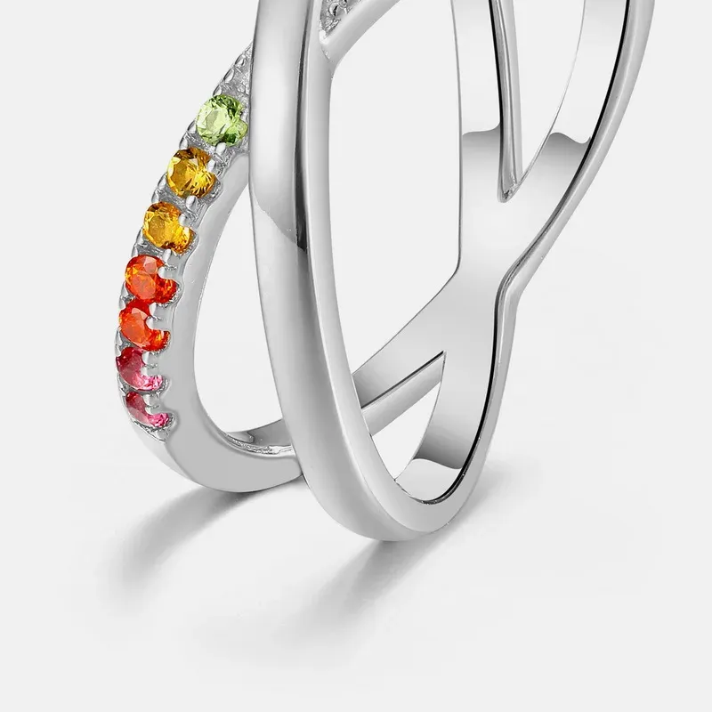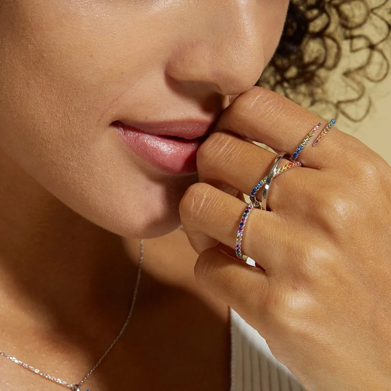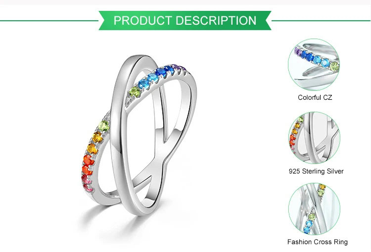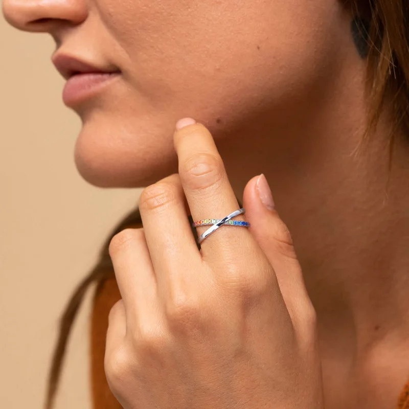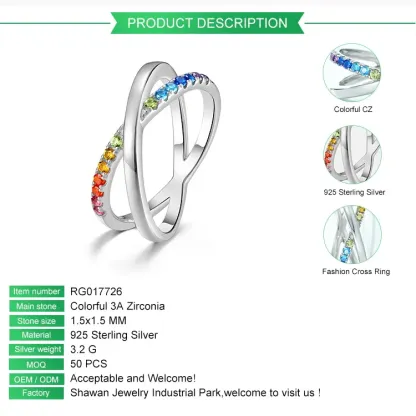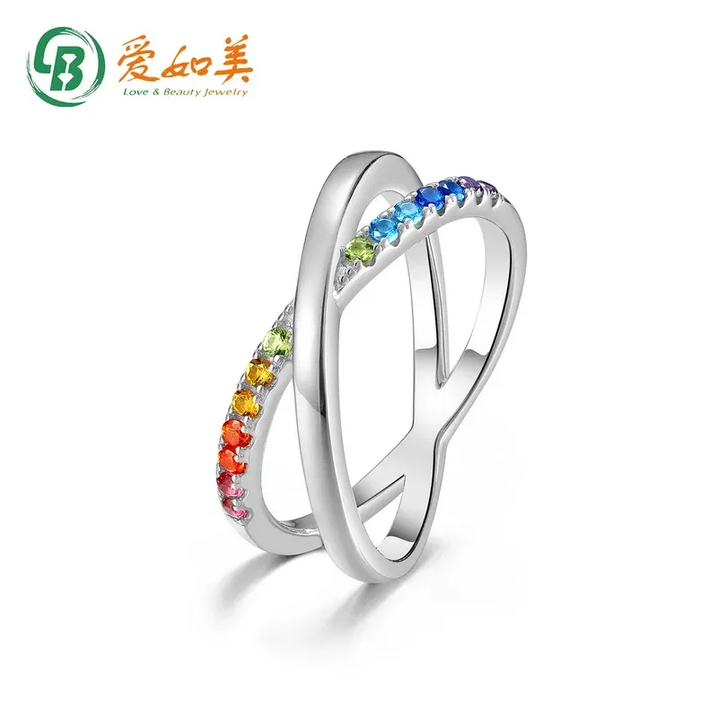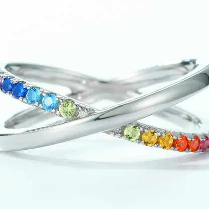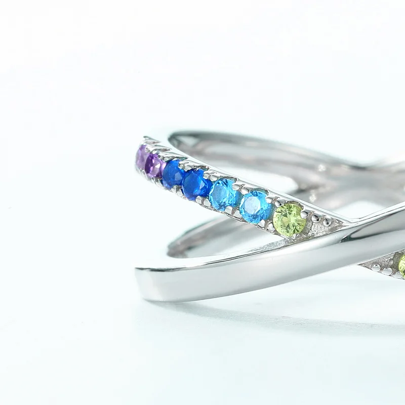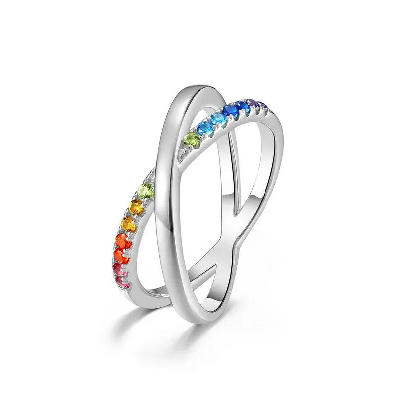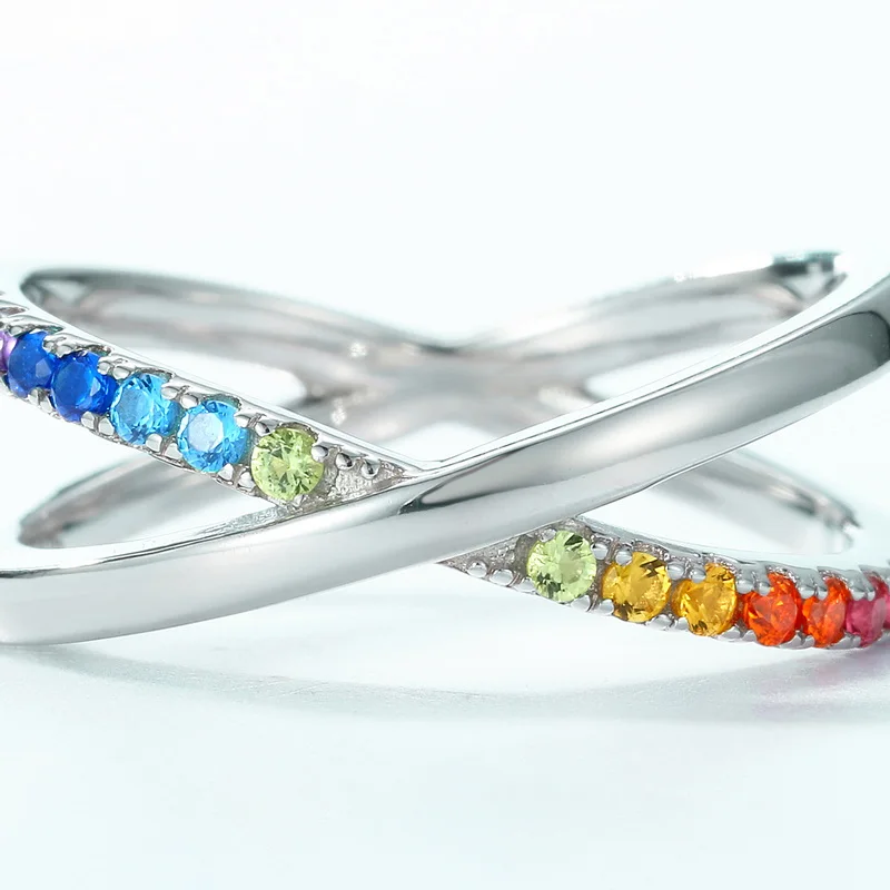 2026 New Design 925 Sterling Silver Rainbow Ring Faith Cross Multiple CZ Colored Zircon X Letter Ring Engagement for Girl Gift