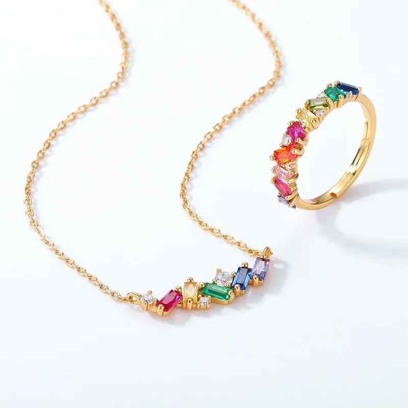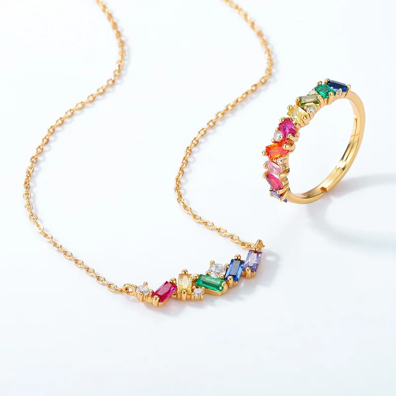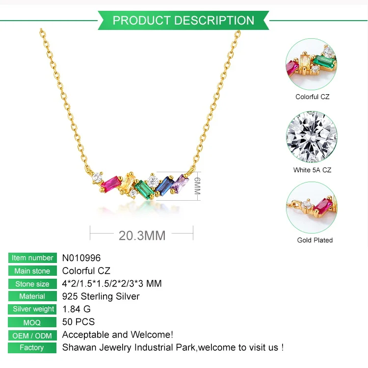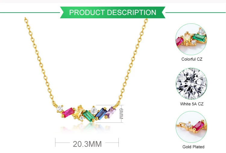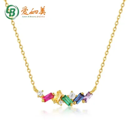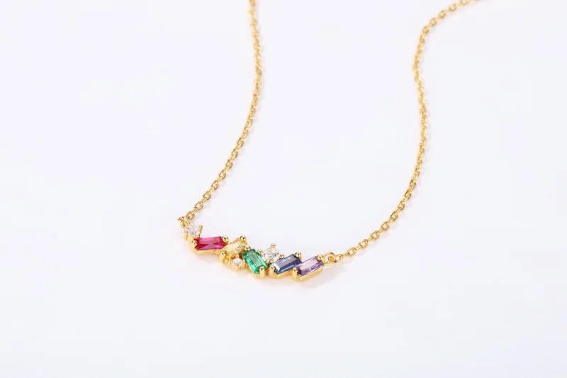 High Quality Fine Jewelry 925 Sterling Silver Rainbow Pendant Real Gold Plated Charm Necklace