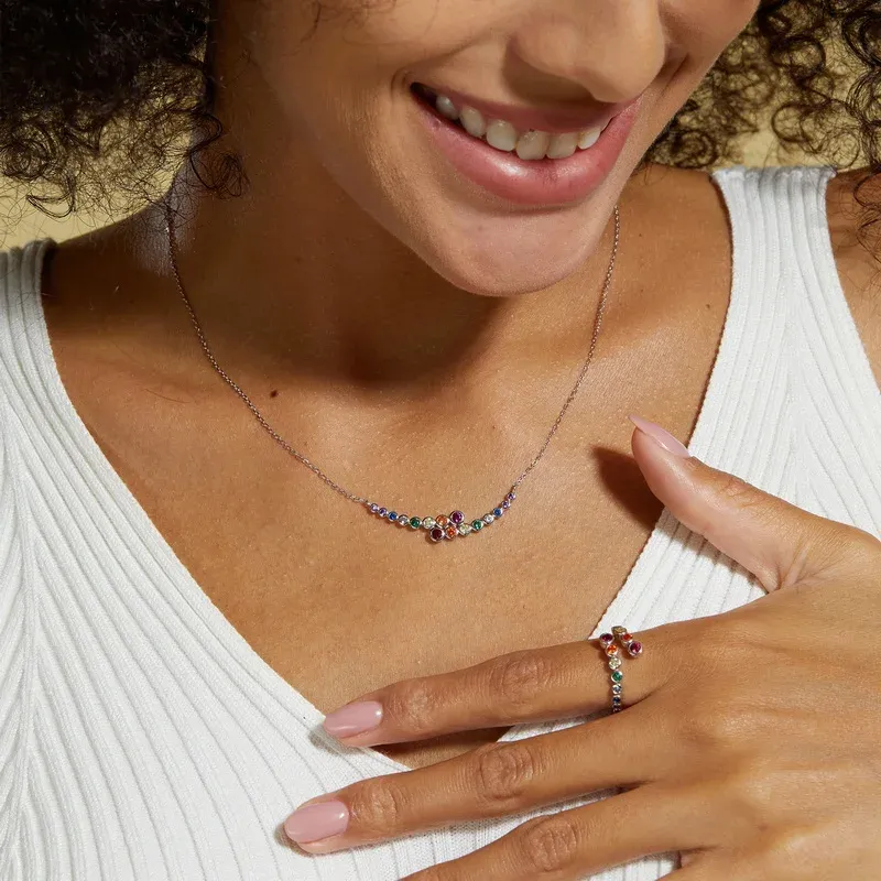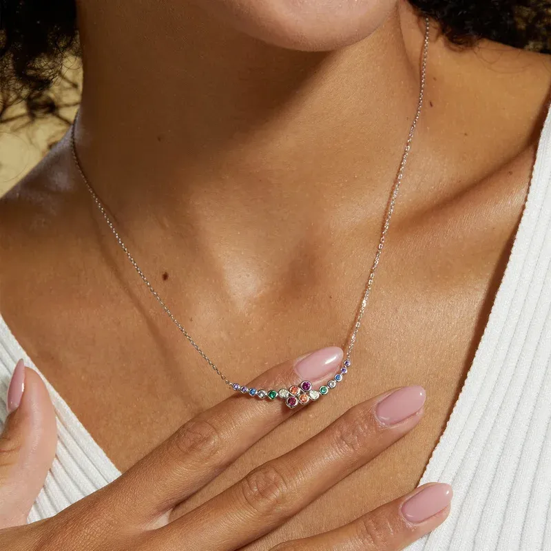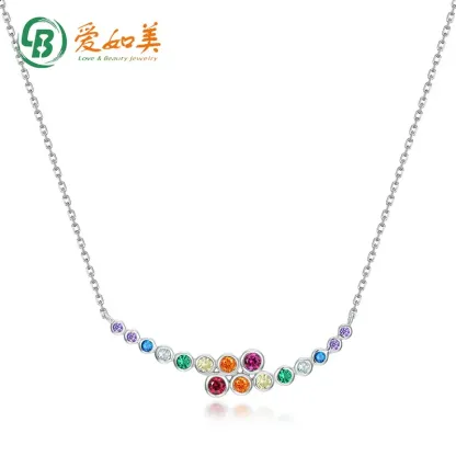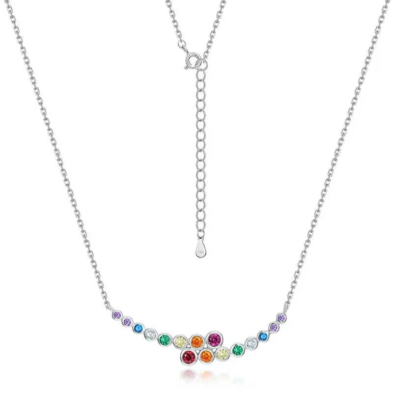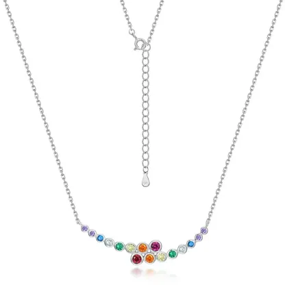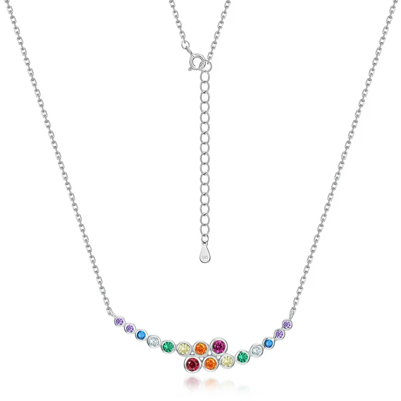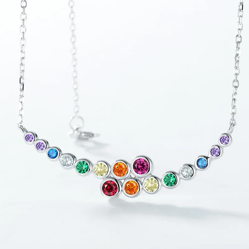 New Arrival Brilliant Colorful 7 Gradient Zircon Charm Necklace Rainbow 12 Month CZ Birthstone Necklace