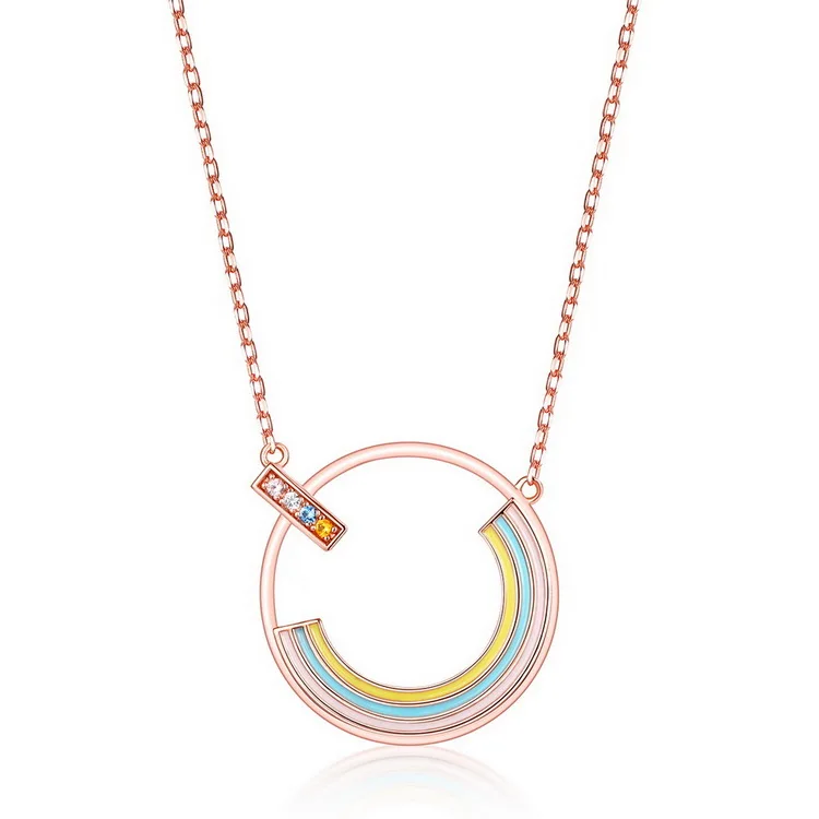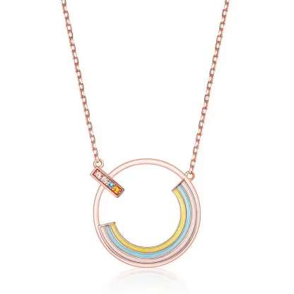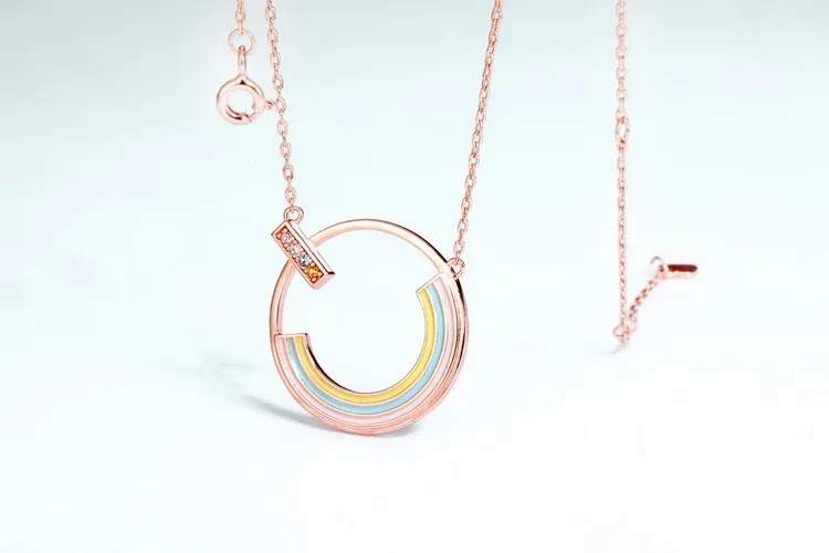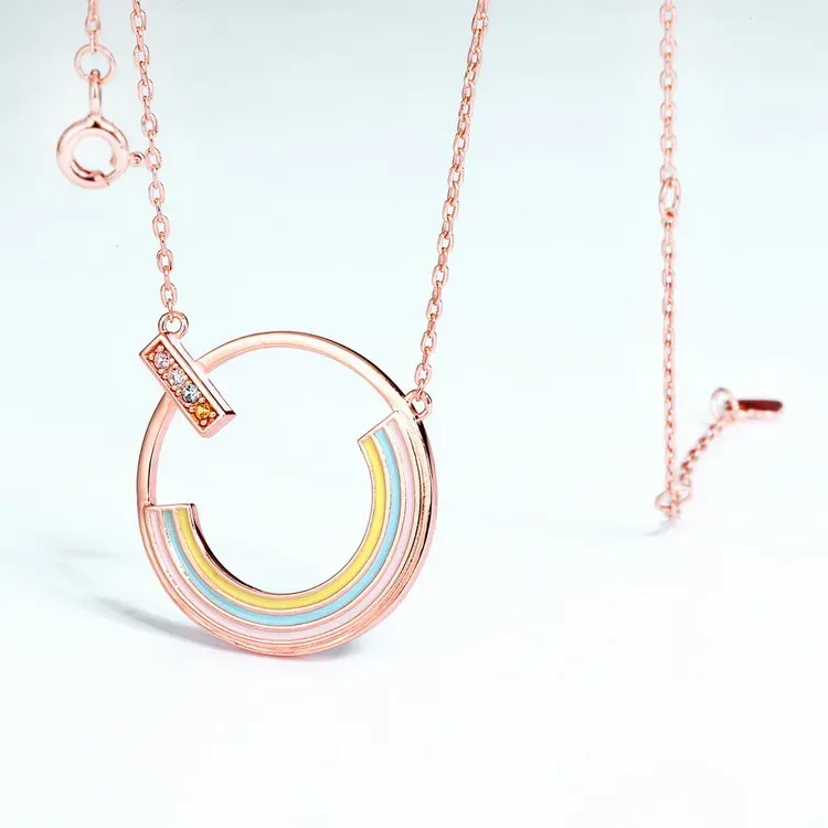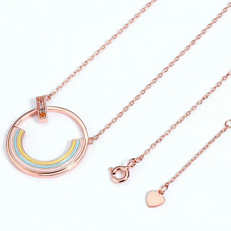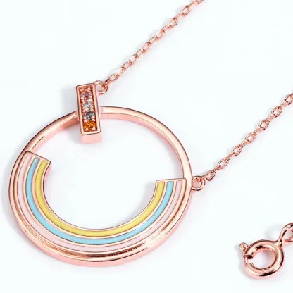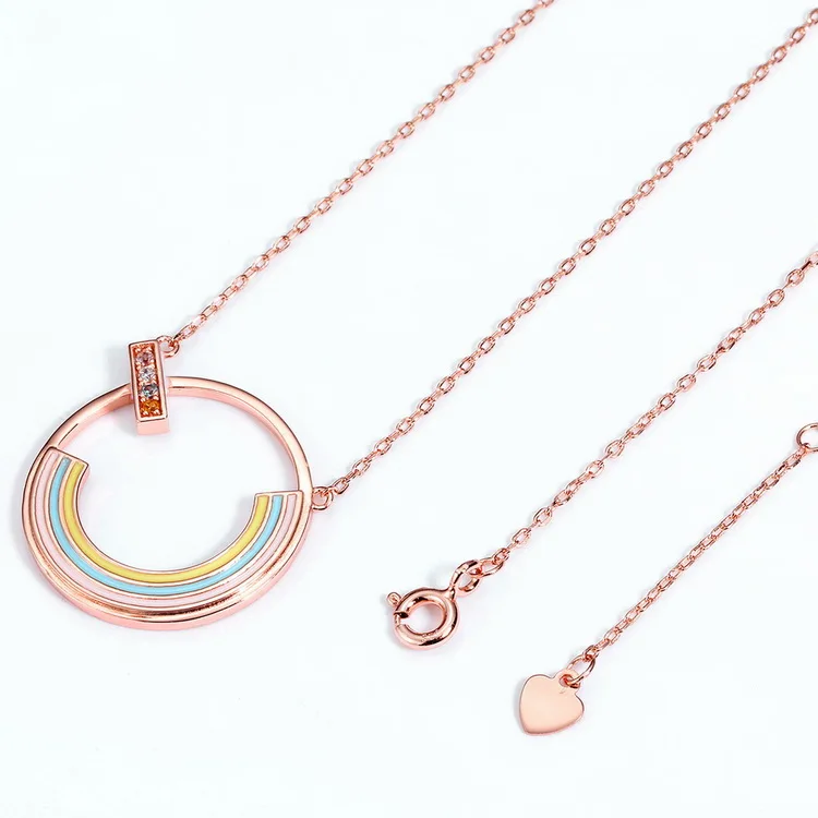 Rainbow Zircon Necklace Gold Plated Rose Real Gold 925 Sterling Silver Multicolor Pendant