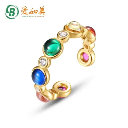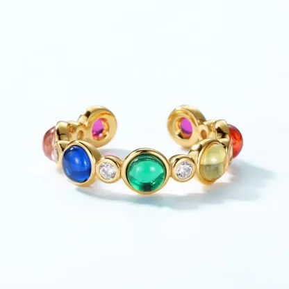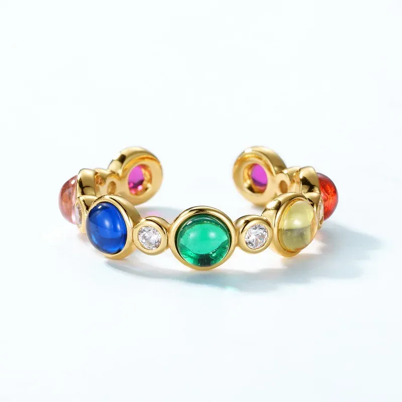 Rainbow Color Stone Stack Women's 5A Zircon Rings Popular Custom Fine Jewelry Rings