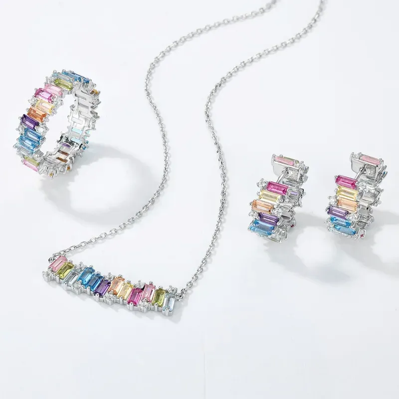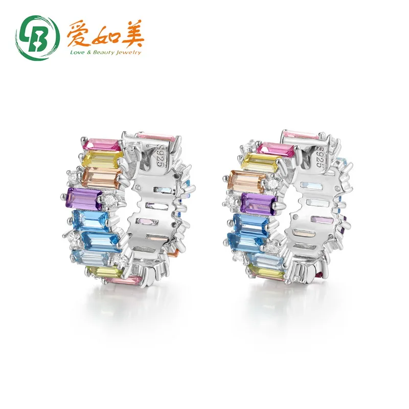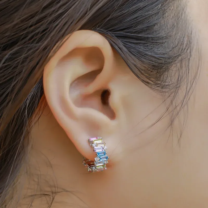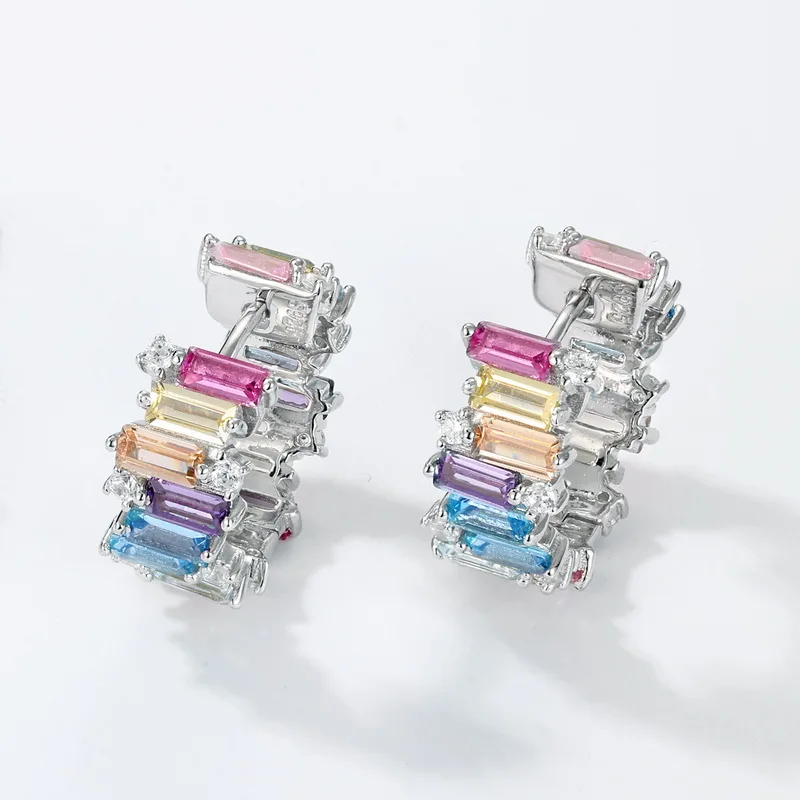 New Color Zircon Women S925 Sterling Silver Earring Trendy Jewelry for Engagement Wedding Party
