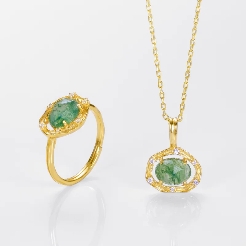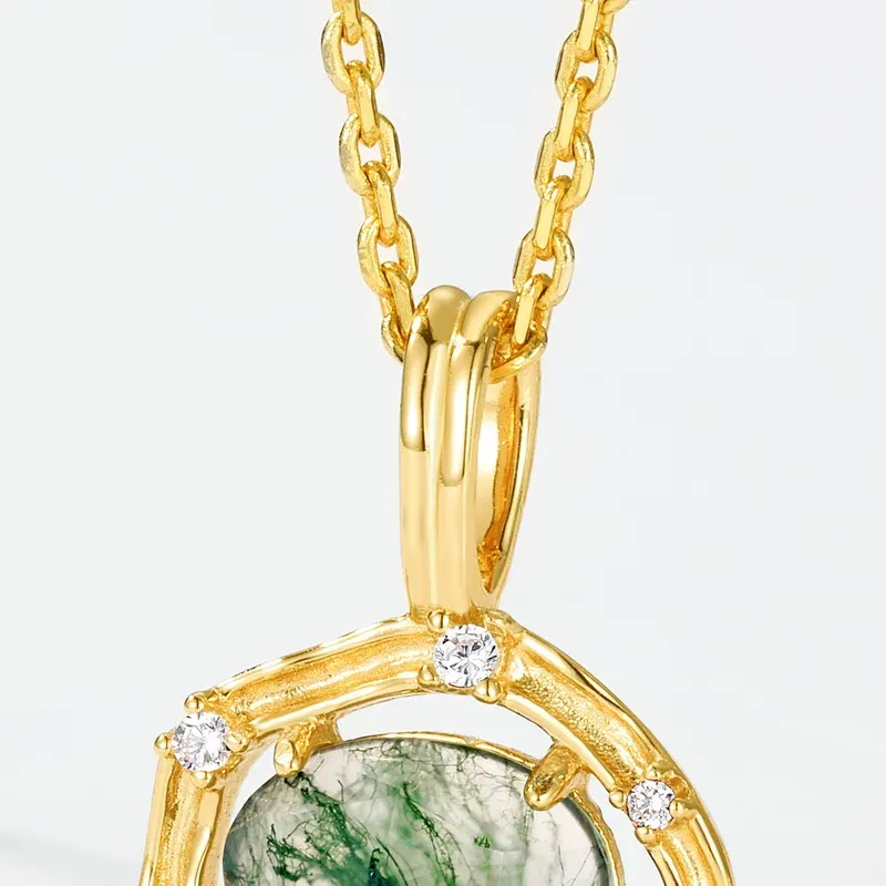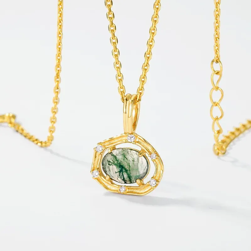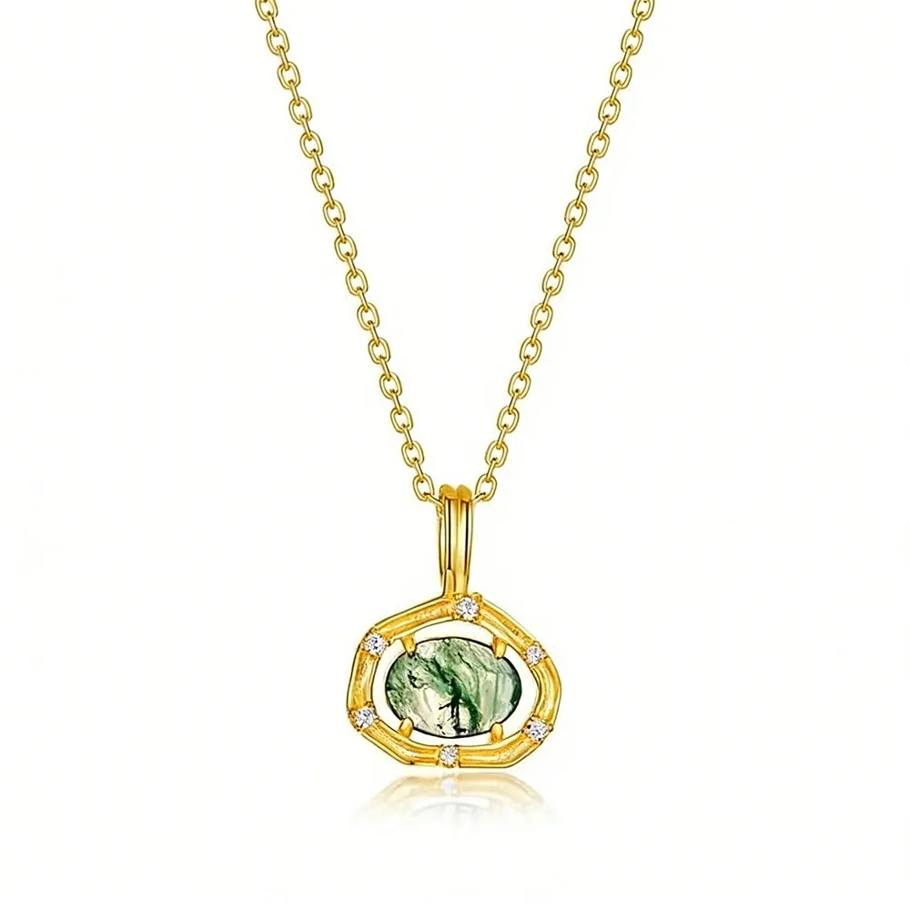 S925 Sterling Silver Green Moss Agate Necklace for Women Niche Design Lianli Branch Pendant Fashion Jewelry