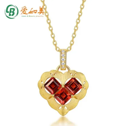 Vintage Heart Shaped Garnet Pendant Necklace 925 Sterling Silver Brushed Clavicle Chain Valentines Day Gift for Women