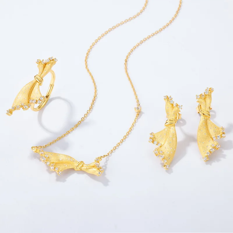 Retro Italian Brushed Craft Mini Skirt Earrings and Necklace Set High-End Exquisite 925 Silver Jewelry