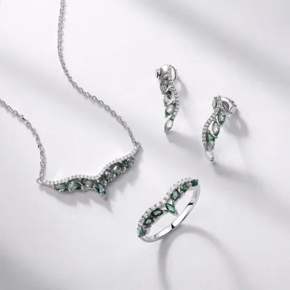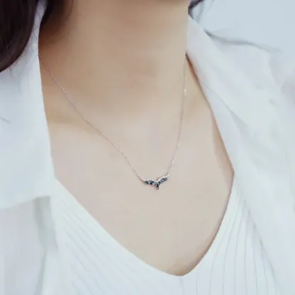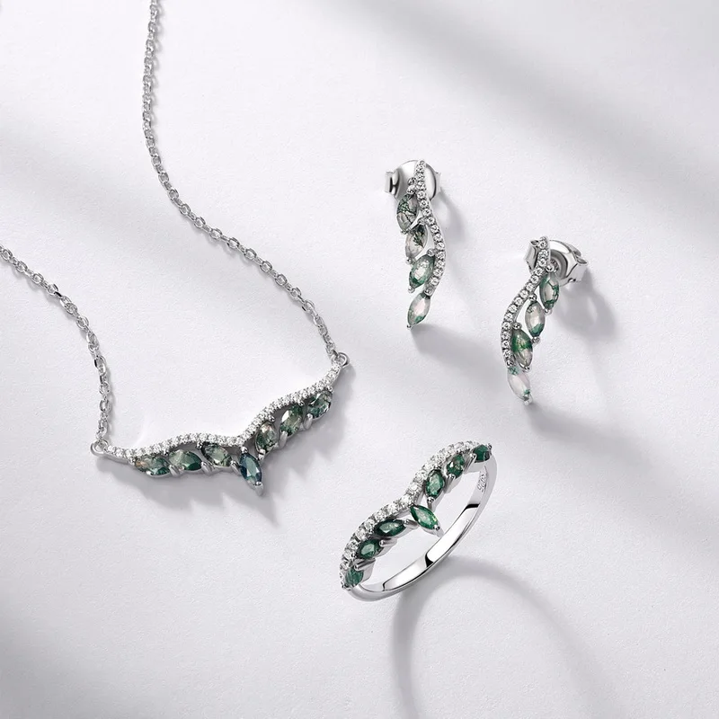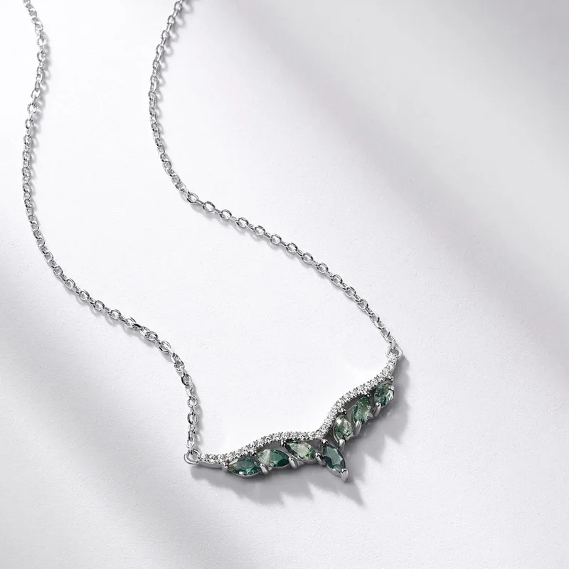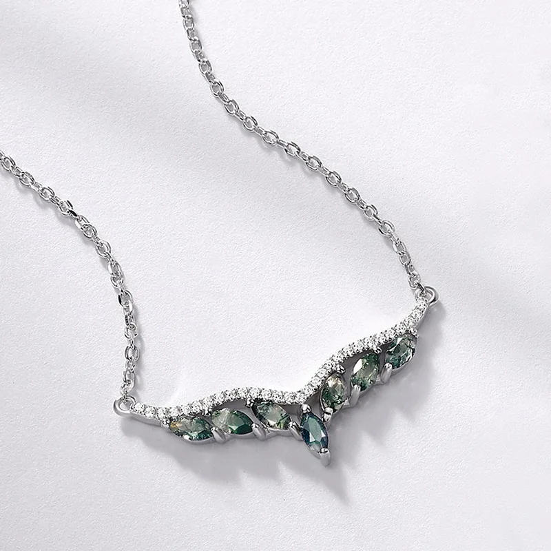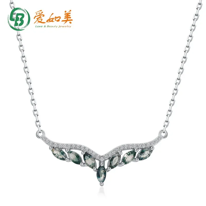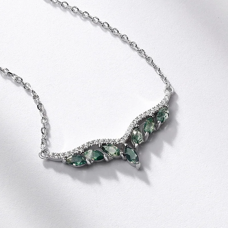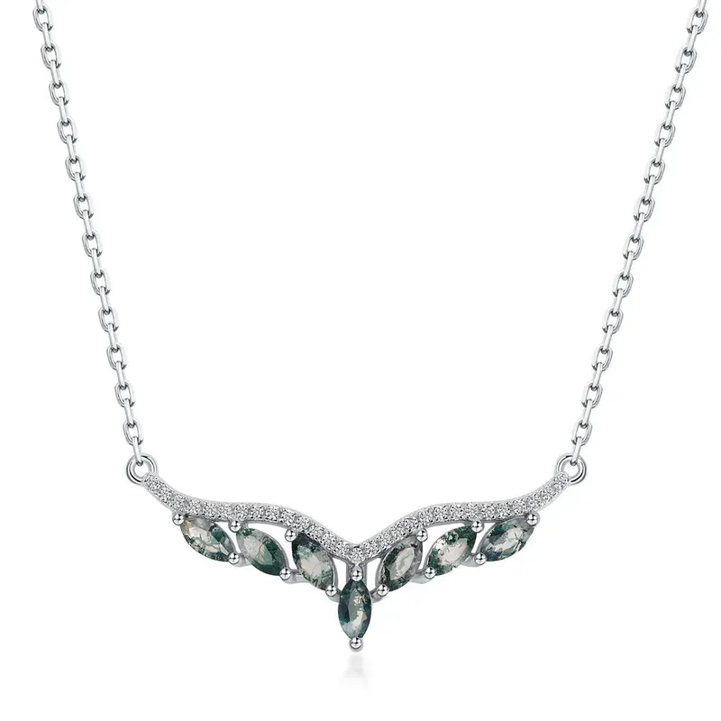 New Angel Wings Green Moss Agate Necklace 925 Sterling Silver Clavicle Chain Natural Gemstone Jewelry for Women