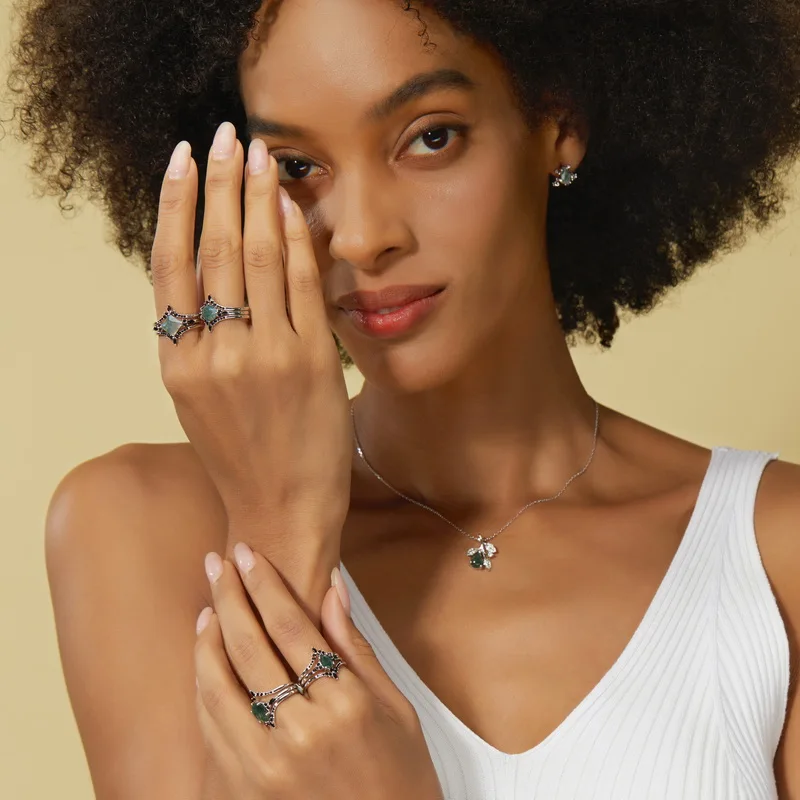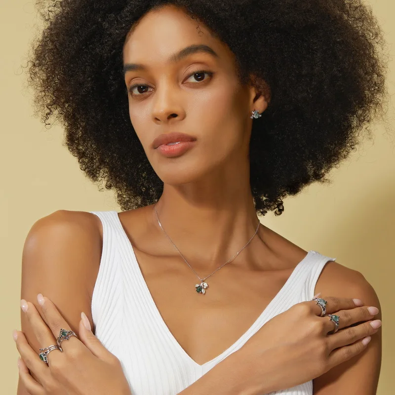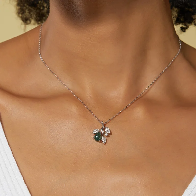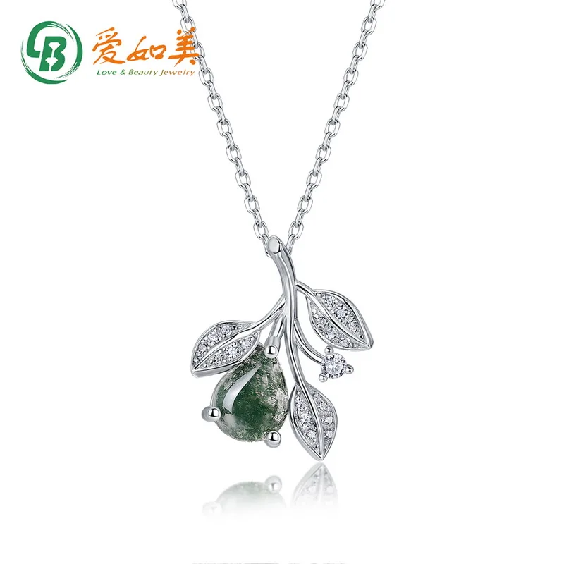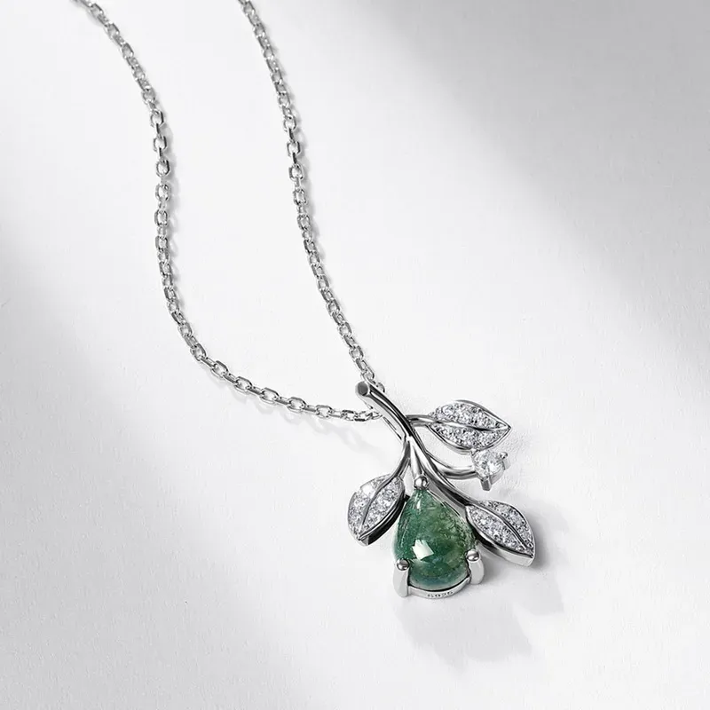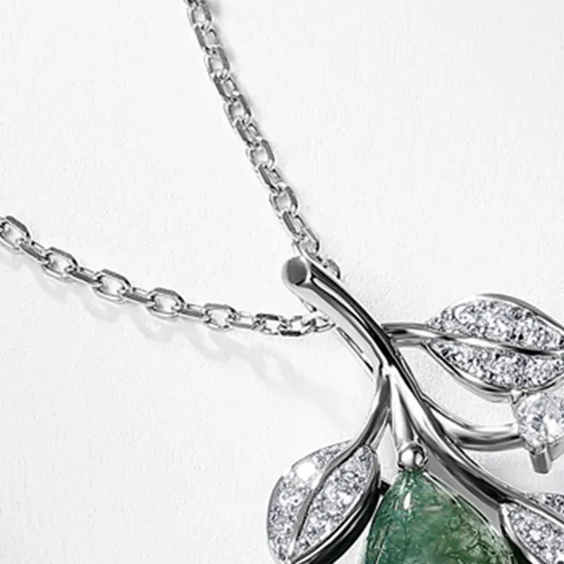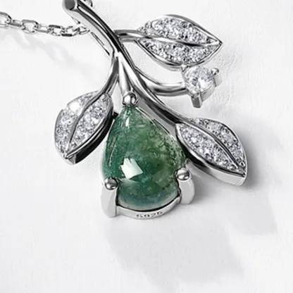 Natural Green Moss Agate Necklace Exquisite 925 Silver Pear Shape Charm Jewelry for Women