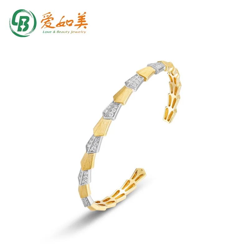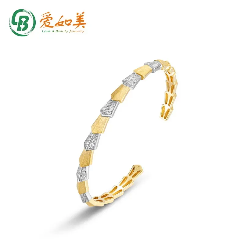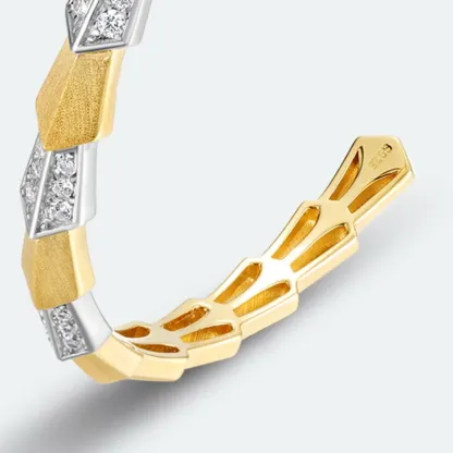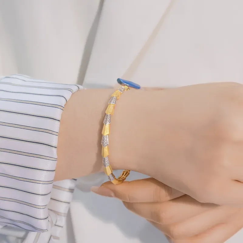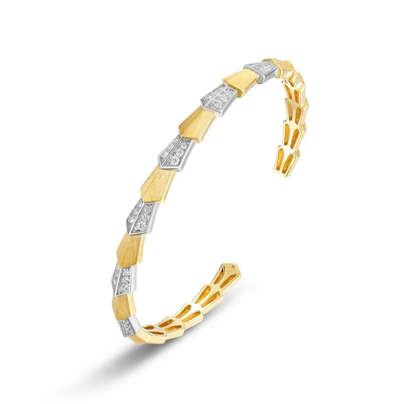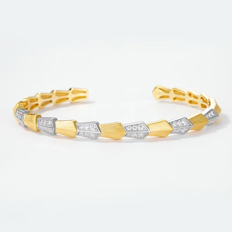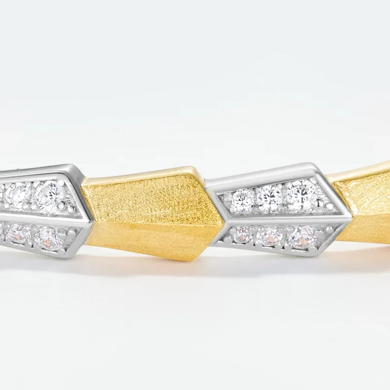 S925 Sterling Silver Sandblasted Cuff Bangle Women Two-Tone Gold Plated 5A Zircon Geometric Open Bracelet