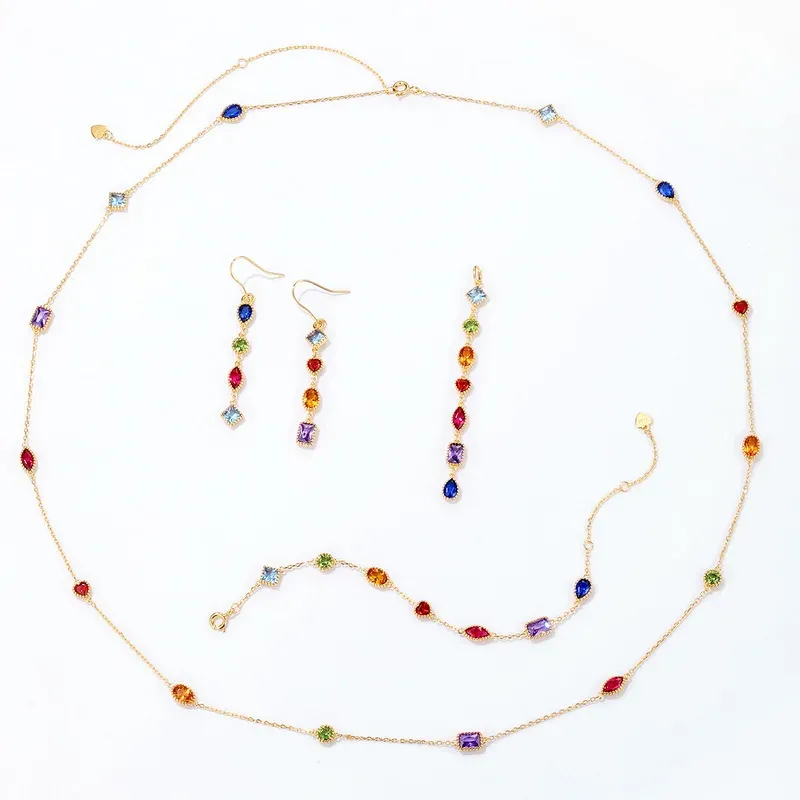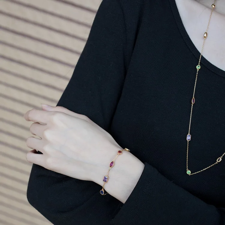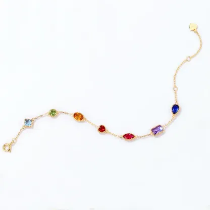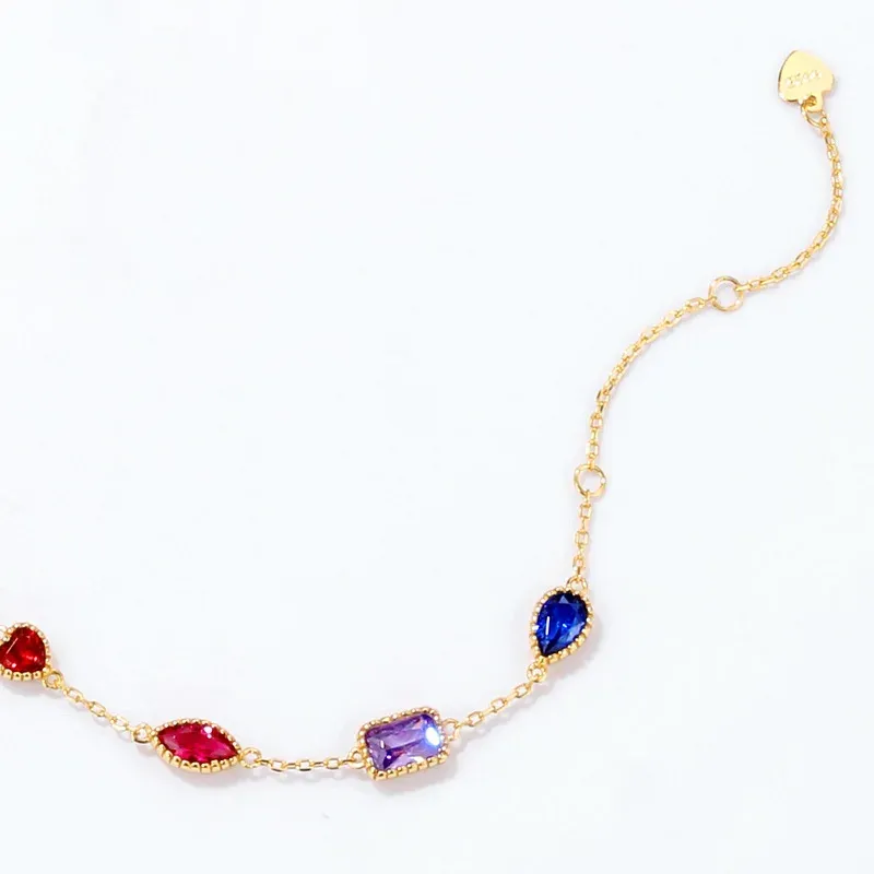 Fashion 925 Silver Rainbow Cz Bracelet Classic Design Gold Plated Multi Color Zircon Girl Rainbow Gold Plated Chain